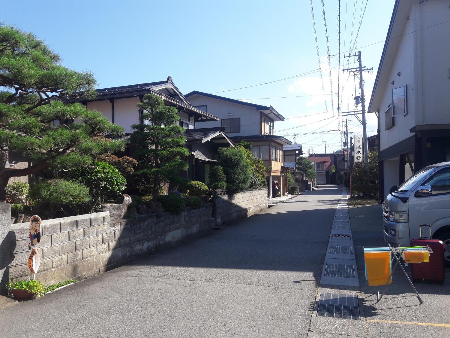 Nous sommes arrivés en début d’après-midi à Takayama, après une belle promenade en train et de beaux virages en bus dans les montagnes depuis Iijima.