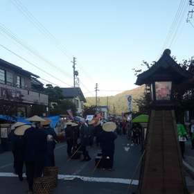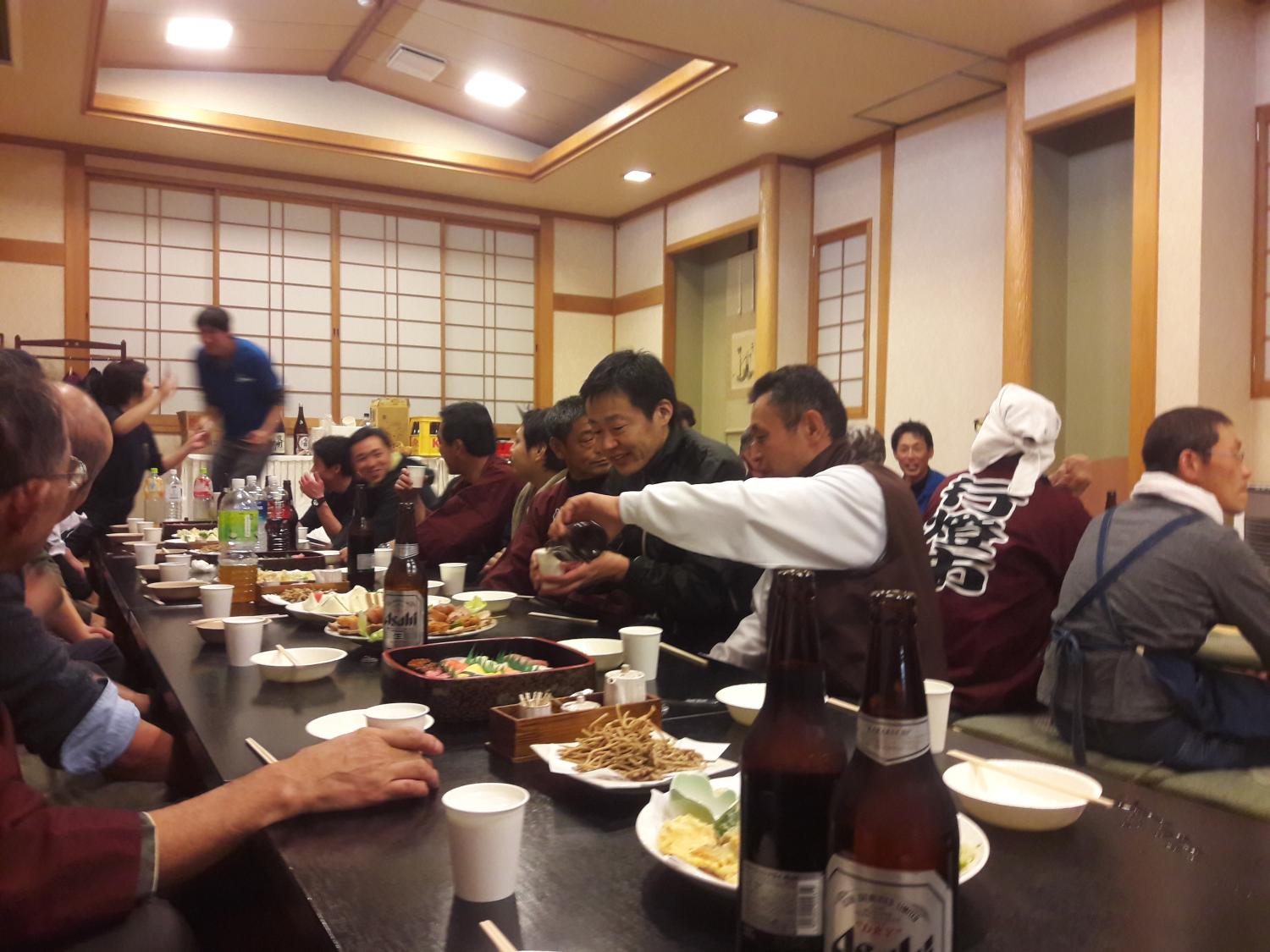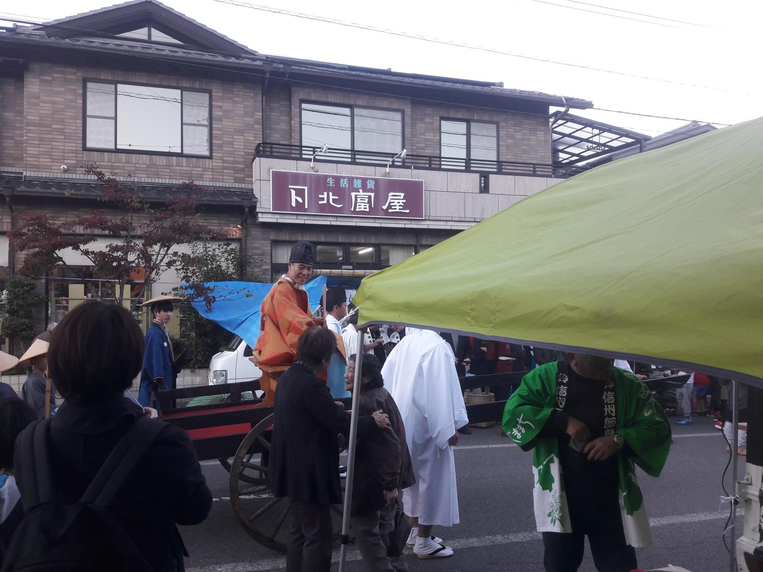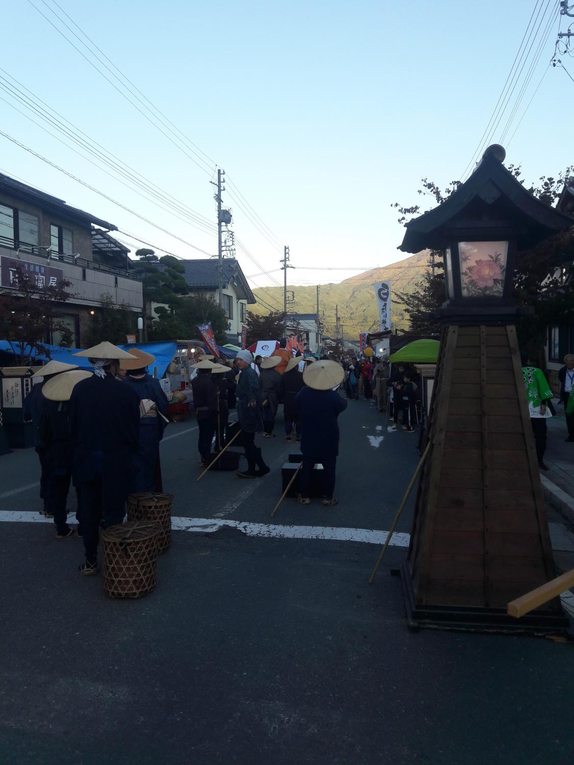 Le festival était a priori le dernier de la ville, la nouvelle génération n’étant pas assez intéressée ou pas assez disponible pour reprendre le flambeau. Cela explique la présence du gouverneur de la préfecture de Nagano, et une grande émotion à toutes les étapes de la fête. Celle-ci s’est déroulée dans la rue principale du village jusque vers 20h, suite à quoi le restaurant de soba (nouilles de sarrasin) local a ouvert ses portes pour accueillir la suite des festivités (dernière photo).