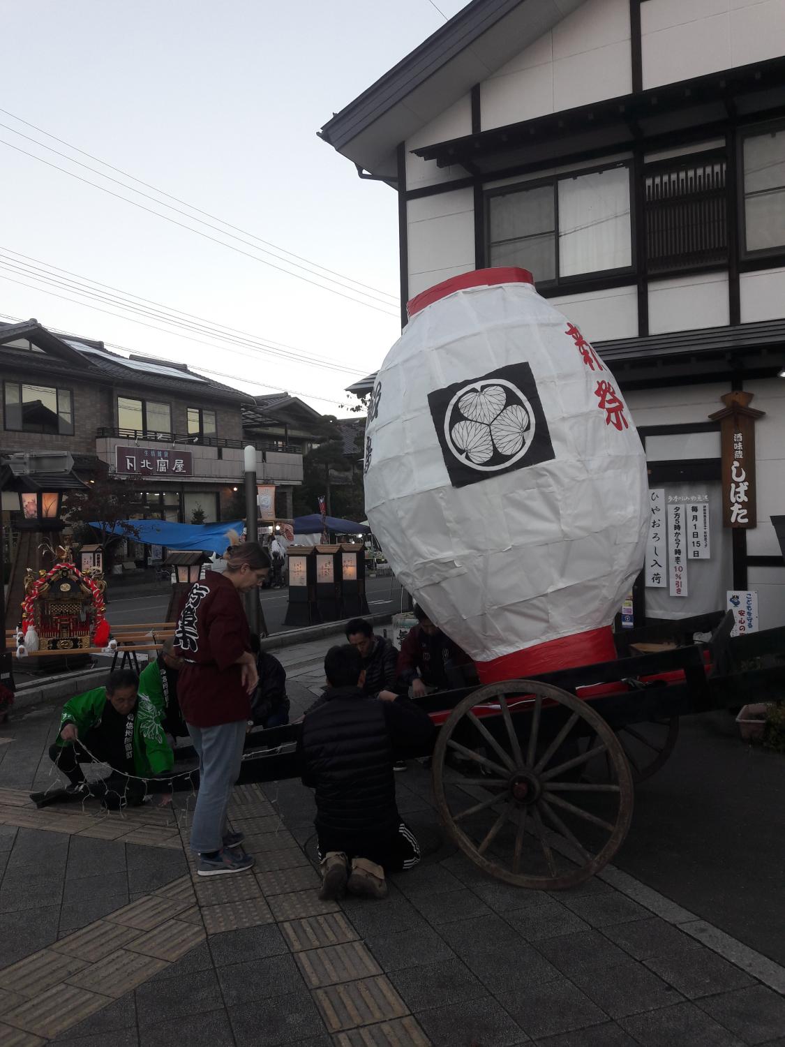 Ce bon vieux festival a été largement à la hauteur de nos attentes ! Même s’il n’était bien sûr pas aussi impressionnant en termes de chars, de nombres de personnes ou de bruit, c’était vraiment le meilleur o-matsuri que nous ayons vécu. Plus humain, plus convivial, plus participatif. Nous avons même porté une sorte de char orné d’une lanterne géante quasiment tout seuls. 🙂